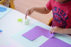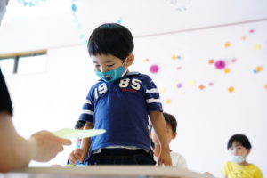 好きなお色の”ながぐつ”と”でんぷんのり”をひとりずつ持っていきます!