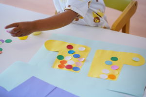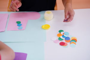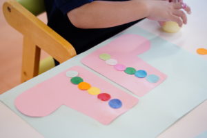 次はカラフルな水玉模様を”ながぐつ”に貼っていきます!💕