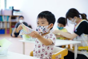 みんなそれぞれ、好きなお色のおりがみを一枚ずつ選びます😊🧡