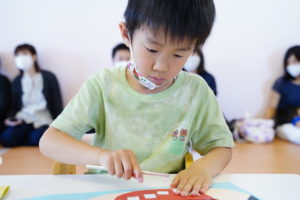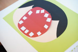 次は切った”歯”をおくちに”でんぷんのり”を使って貼っていきます!🙌