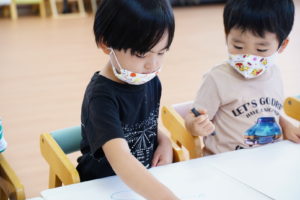 今日の「ずがこうさく」では”夏のもの”をみんなでおえかきしました!🎆