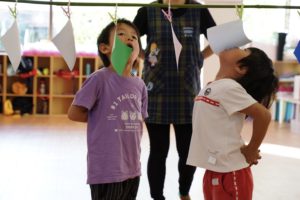 今日は「パン食い競争」のパンをおりがみでみたてて練習しました!