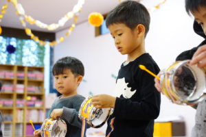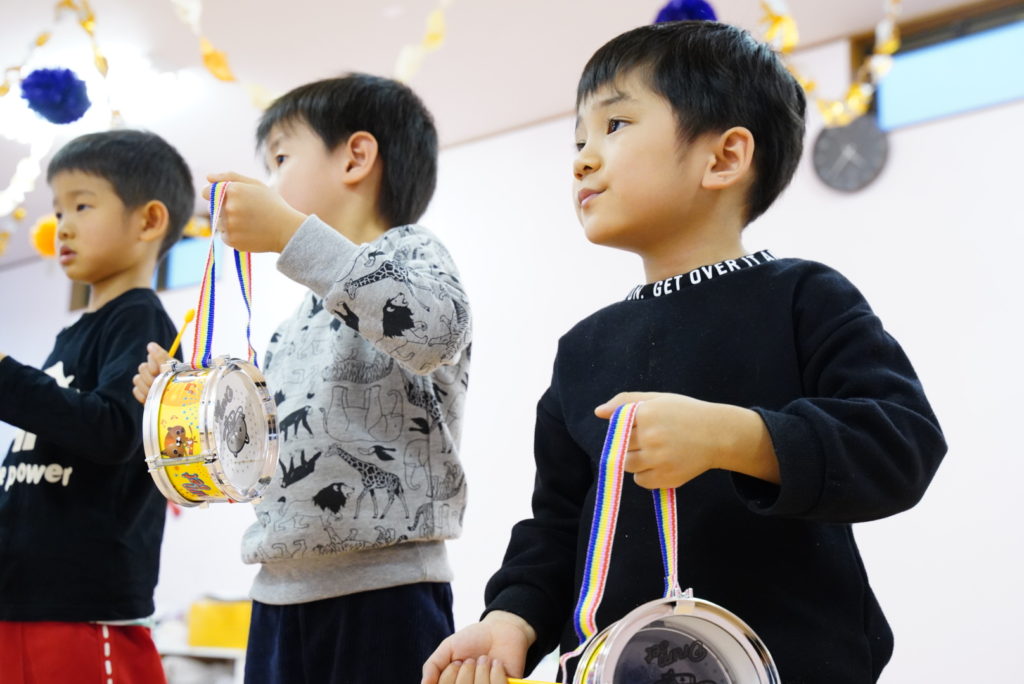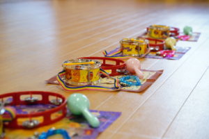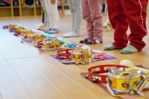 たいこ・マラカス・すず・タンバリンなどたくさんの「がっき」を使って演奏していきます😊