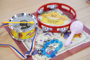 今日の「おんがく」では今月のテーマの「がっき」を使って