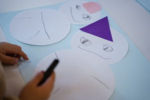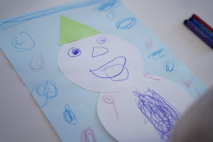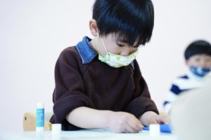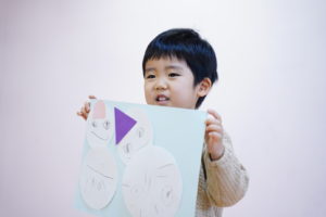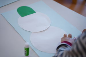 今日の「ずがこうさく」では今月のテーマの「のり」をつかって「ゆきだるま」を作りました⛄
