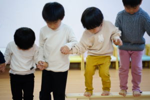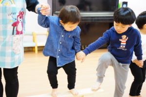 次はおともだちみんなでおててを繋いで「平均台」に乗ってみよう!👫👫