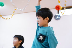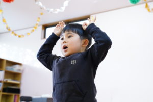 ピアノの「おと」をよく聞いて「おと」」に合わせて体を動かします!