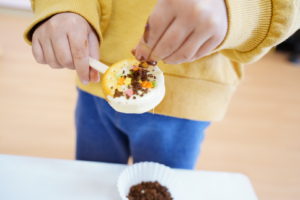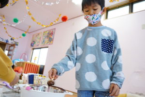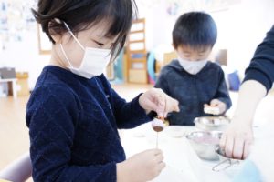 当日の「バレンタインのお菓子づくり」ではおともだちみんなで