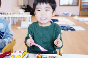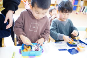 おかしを作り終わったらみんなの家族が作ってくれたおいしいお弁当を食べよう!🍱