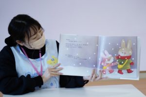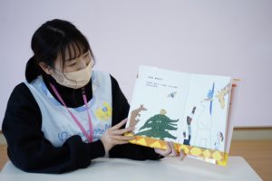今日の「えほん」では今月のテーマの「どうぶつのえほん」や