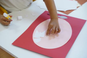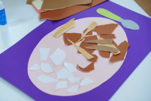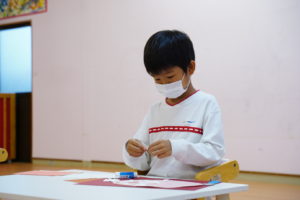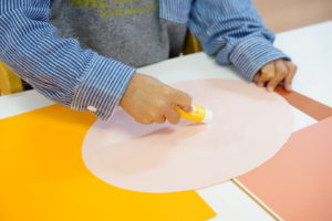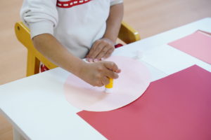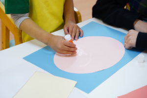 大きい紙にはどれくらいのりをつけるかなあ~?