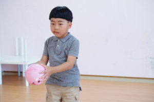 おててでボールをしっかり持ってグルグル!