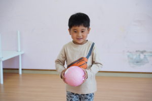 今日は、ボールに慣れるための遊びを3つしました!