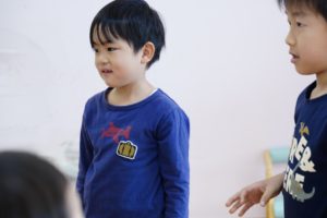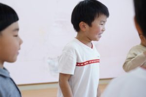 皆で輪になって、隣のお友だちに