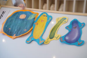 絵本に出てきたお野菜を使って比べっこをします🍅🥒