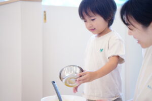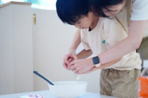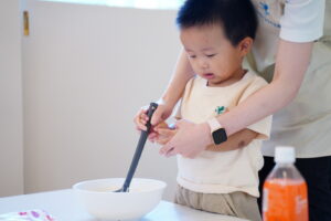みんなに材料を入れてもらって混ぜまぜします😆🌀