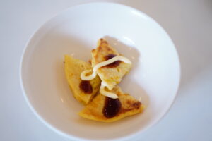 ソースとマヨネーズをかけて、、、