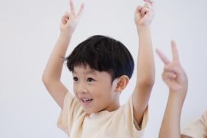 ピースして上に伸ばすよ🙌