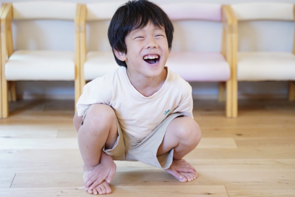 そのまましゃがんでカニのポーズの完成です🦀✨