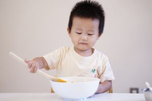 ぎゅっと木べらとお皿を持って