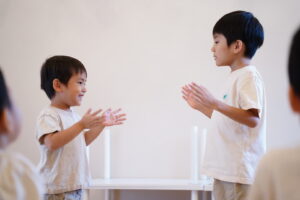 次は向かい合ってお友達のお顔を見ながら