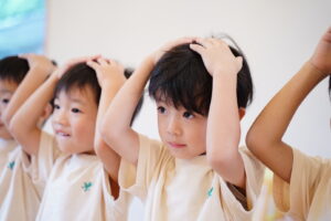 最初は『あたま かた ひざ ぽん!』だよ!