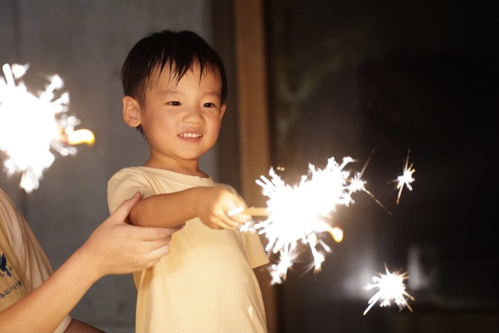 初めて手持ち花火をするお友達や