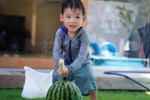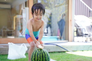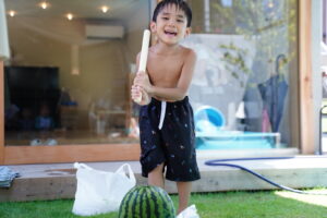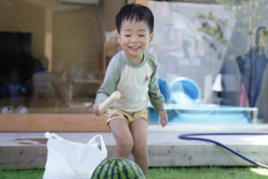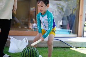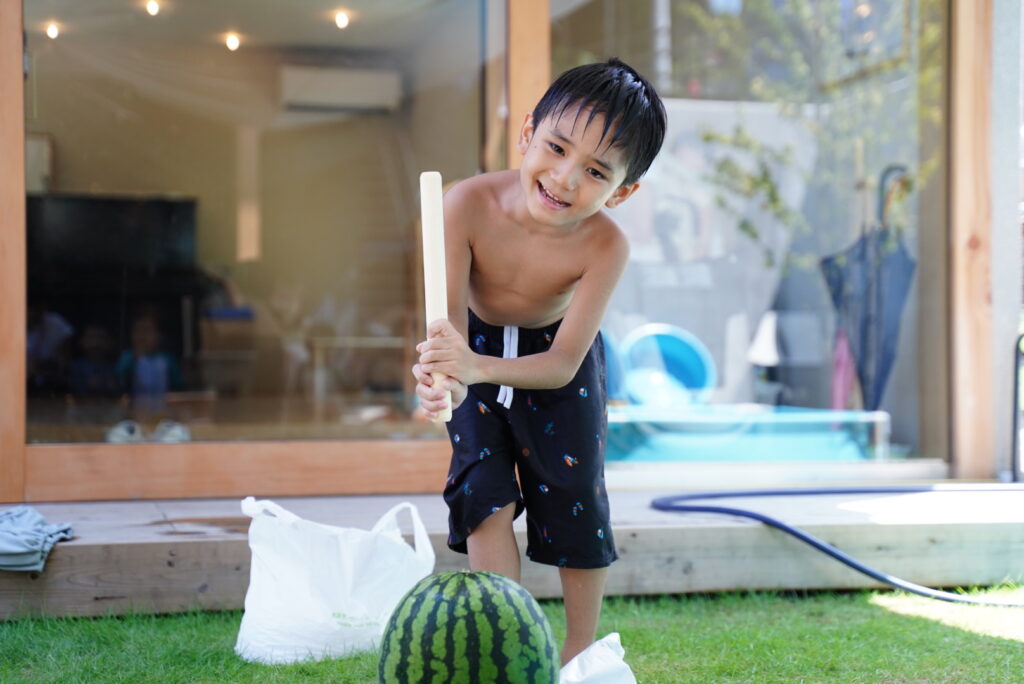 みんな力いっぱいスイカを割ります🍉🍉