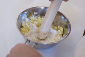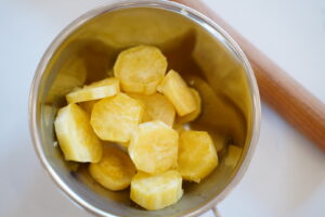 次は全部のさつまいもを潰したら[片栗粉・砂糖]を