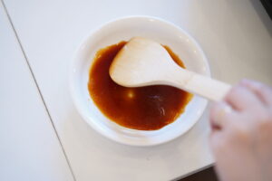 砂糖と醤油を入れて味付けをするよ🤗