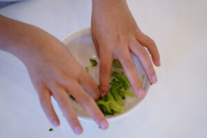小さくしたブロッコリーを集めて