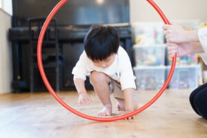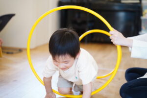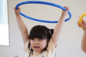 「えい!」ってフラフープを持ち上げてね!!