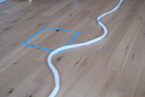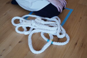 最後の縄跳びは床から10センチほど浮かせた大縄を