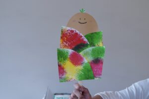 正解!先週はお野菜を使って野菜スタンプをしたね!