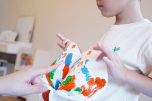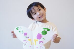 ちょうちょさんのからだ半分に絵の具をつけて