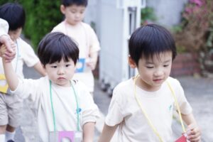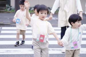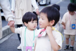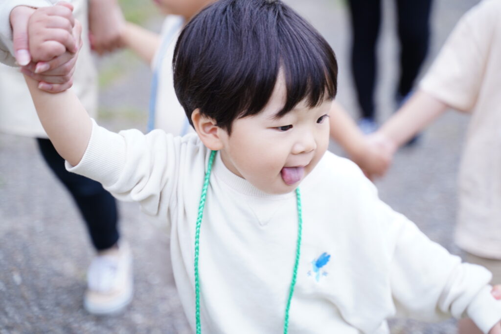 ④おともだちと手をつないで歩く