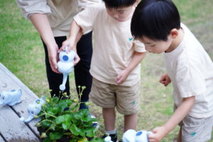 みんながたくさんお水を上げてくれたから、イチゴさんも喜んでいるね!