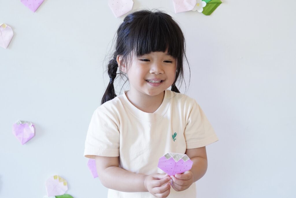 「じゃーん!うすいピンクのいちごを取ったよ」