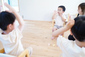 今日は、みんなでお歌をうたったり手あそびをたのしみます!