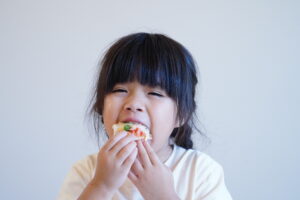 ホカホカのピザトーストを大きなお口でパクッ😋✨