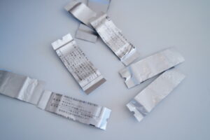 お菓子の袋は硬かったり