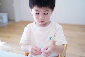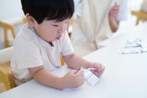 今日の集団療育は「袋の開け方」です😊
