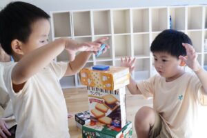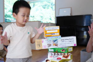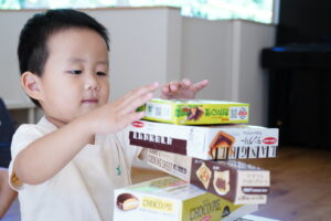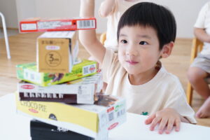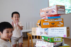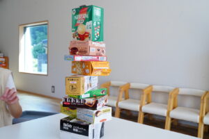 みんなでいろいろなものを持ち寄ってタワー作り!