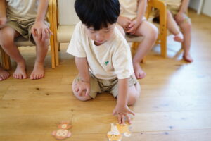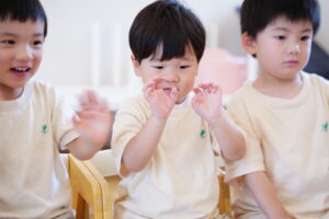 手で遊ばず、手はお膝でおはなし聞こうね😊
