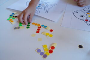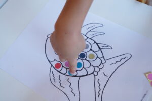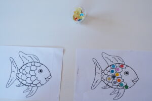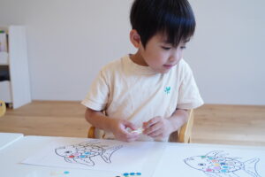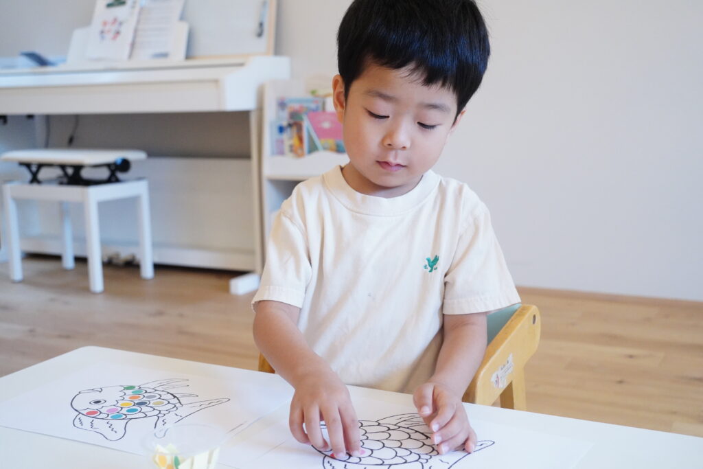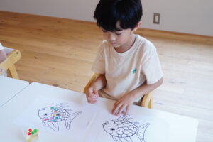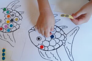さかなのうろこに色のシールを貼って