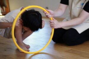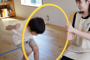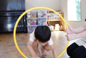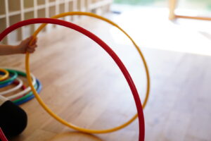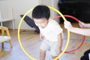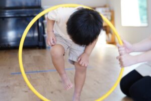 最初はフラフープくぐりをしていくよ!