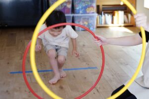 フラフープを触らないようにくぐろうね😌🤚