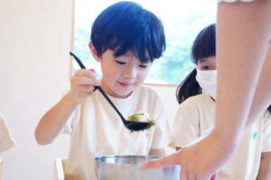 給食当番さん盛り付けお願いします!