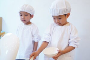 お皿を渡すとき「お願いします」って言えていいね!