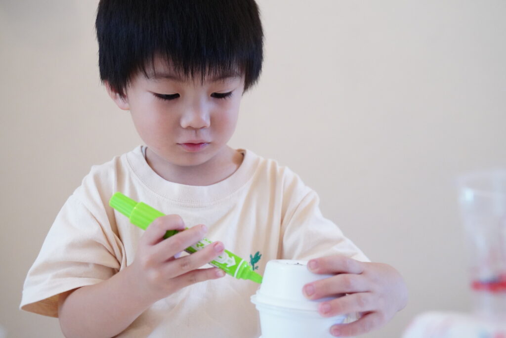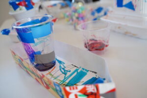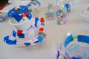 先週の自由あそびの時にカップや箱を使って船を作ってくれたよね🚢